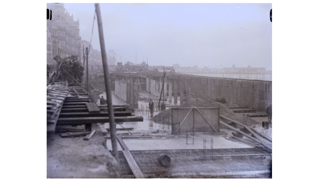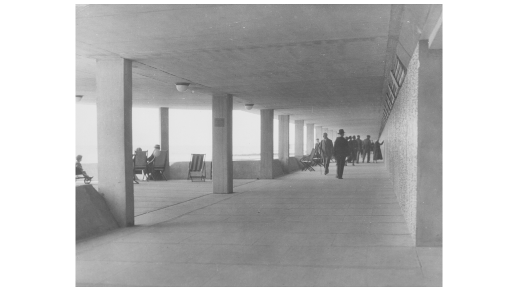Bottle Alley is a 480‑metre lower deck promenade running along the seafront between Hastings Pier and Warrior Square in St Leonards‑on‑Sea, East Sussex. It was constructed between November 1933 and May 1934 as part of an ambitious double‑deck promenade project by Borough Engineer Sidney Little, known locally as the “Concrete King.” The design included an undercover walkway to shelter pedestrians in bad weather, originally featuring glazed shutters that are no longer in place.