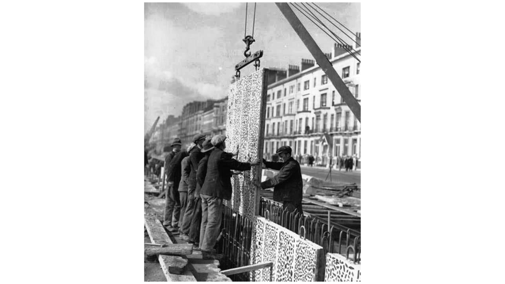 Bottle Alley gets its name from the tens of thousands of multi‑coloured pieces of broken glass bottles embedded into the concrete wall panels along its north side — a distinctive, decorative feature that has endured for nearly a century. In the 1930s, waste glass was far less commonly recycled in industrial processes. Embedding it into concrete would have been both decorative and potentially an early (if unintentional) form of reuse — quite innovative for its time. A local legend suggests much of the glass “came from Hastings town’s legendary knees‑ups” — implying the use of recycled broken bottles from local celebrations and social events.